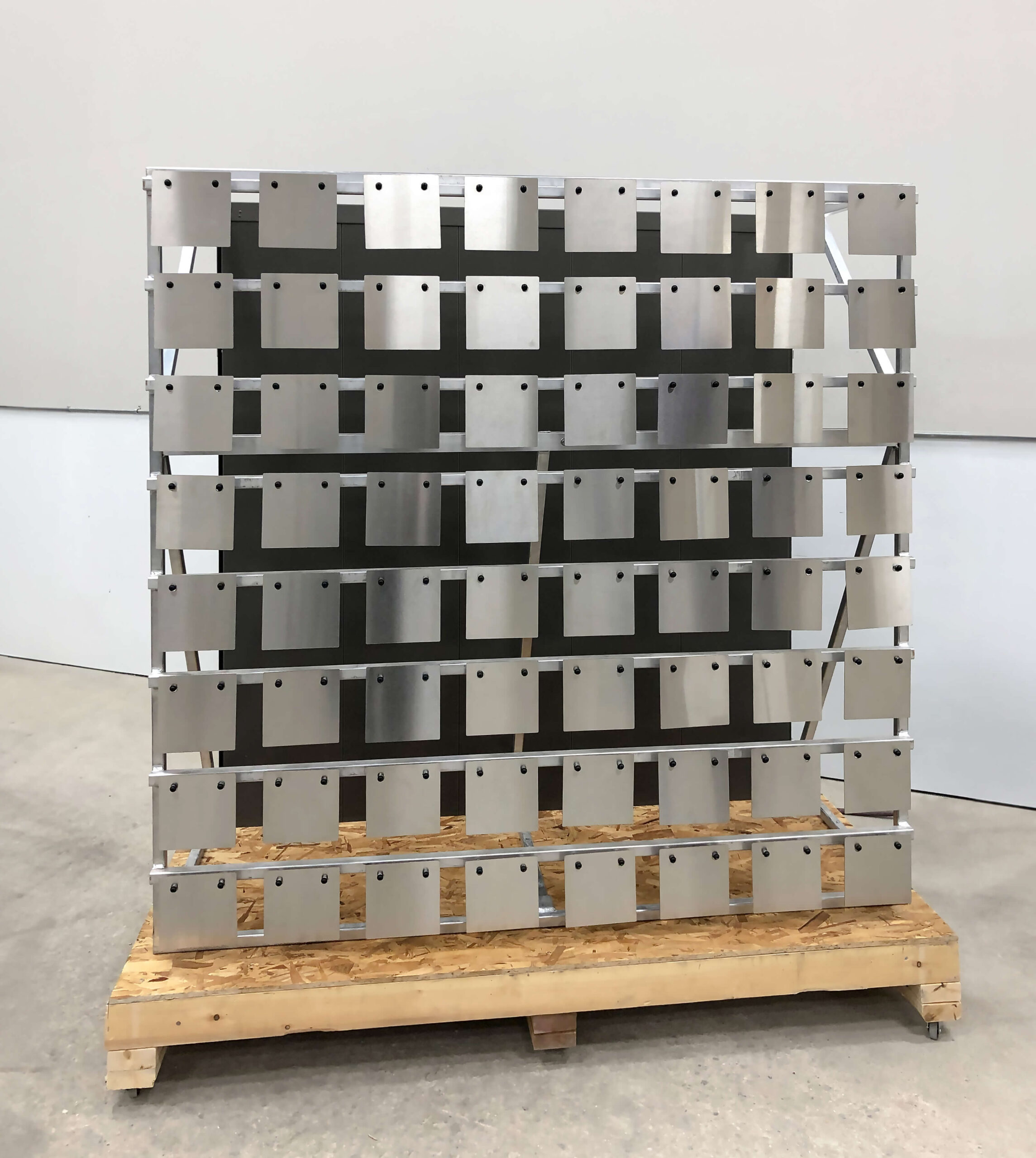 For the National Research Council of Canada’s Factory of the Future in Winnipeg, physical modelling was a critical design tool to test a very specific architectural element: a kinetic façade animated by wind. Responding to the site’s open geography and wind conditions, the team developed a large-scale prototype to explore how the building envelope itself could register and express environmental forces, transforming climate into a visible, ever-changing presence. An initial study model focused on fine-tuning the size, proportion, and patterning of the square metal panels intended to move with the wind.