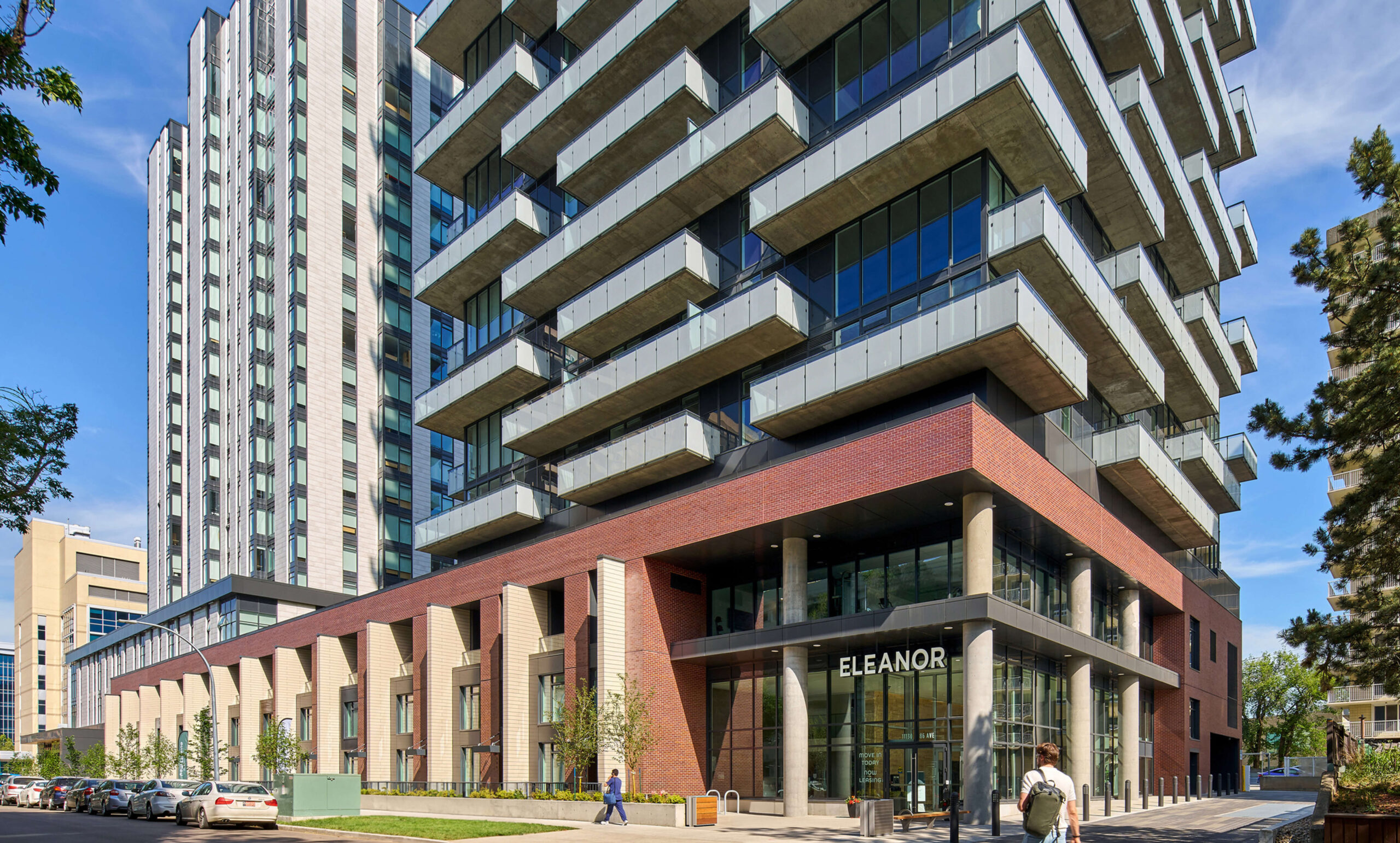 The 680,000-square-foot transit-oriented development includes two residential components: a student residence (Laurent) and a market-rental tower (Eleanor), as well as 7,000 square feet of commercial retail space. Introducing diverse housing options for both students and young professionals, the project enhances the already vibrant Garneau residential neighbourhood.
