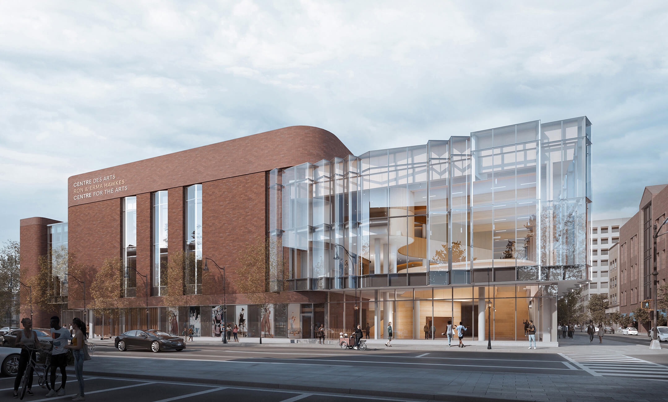 More than a theatre, the Ron and Erma Hawkes Centre for the Arts will serve as a “community living room” and an inclusive gathering space for locals, artists, musicians, and visitors. Rather than opening only for evening performances, it features a multi-level, brightly lit lobby and a daytime café designed for casual congregation and connection with the streetscape. “Currently, we have one room where people come in, sit down, have an experience, and then leave,” says Executive Director Tim Yerxa. “If you have only one room, your hands are tied to presenting just one category of artists.” The new design addresses this by replacing the single-purpose theatre with two formal performance venues—the main hall and the Wilma Clark Theatre—alongside a third multi-purpose studio for rehearsals, small performances, workshops, and community gatherings.