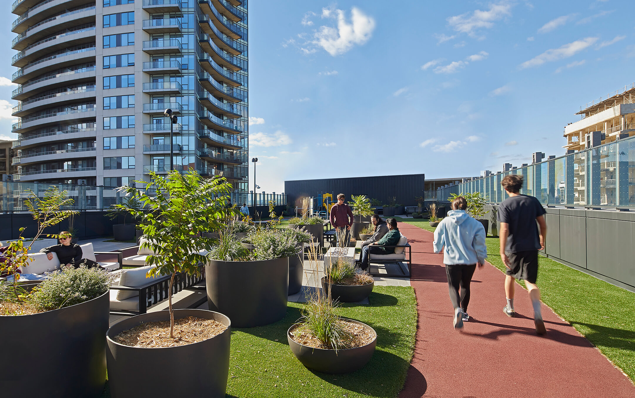 Targeting LEED Gold Certification, the residence features a high-performance building envelope, operable windows for individualized comfort, and an extensive green roof designed to offset stormwater, reduce the heat island effect, and support biodiversity.