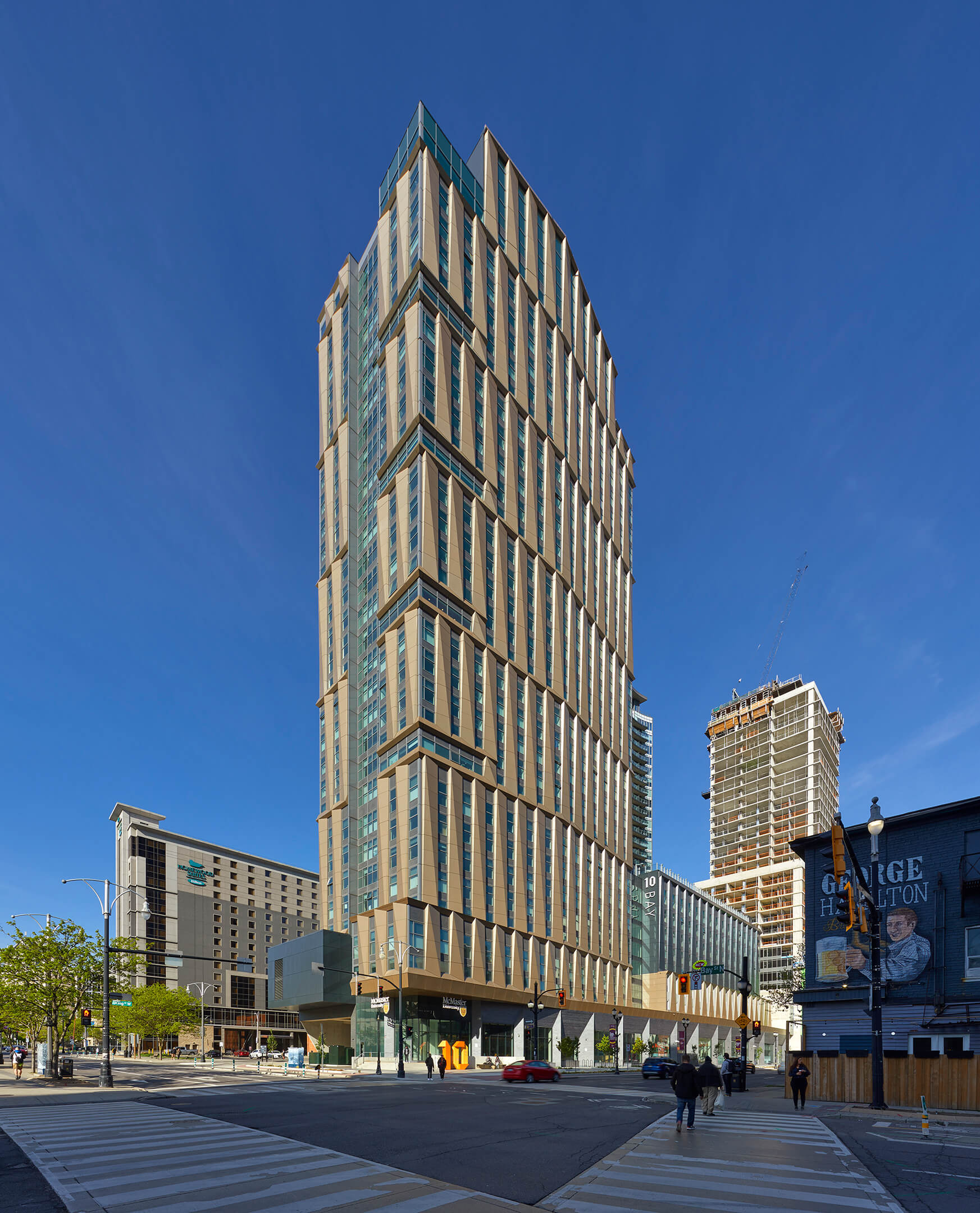 Located at the intersection of Bay Street and King Street in Hamilton’s downtown, the 30-storey residence is designed to foster community and enhance student well-being. Home to more than 600 graduate students and their families, 10 Bay contributes to a vibrant, inclusive campus culture and enriches community life.