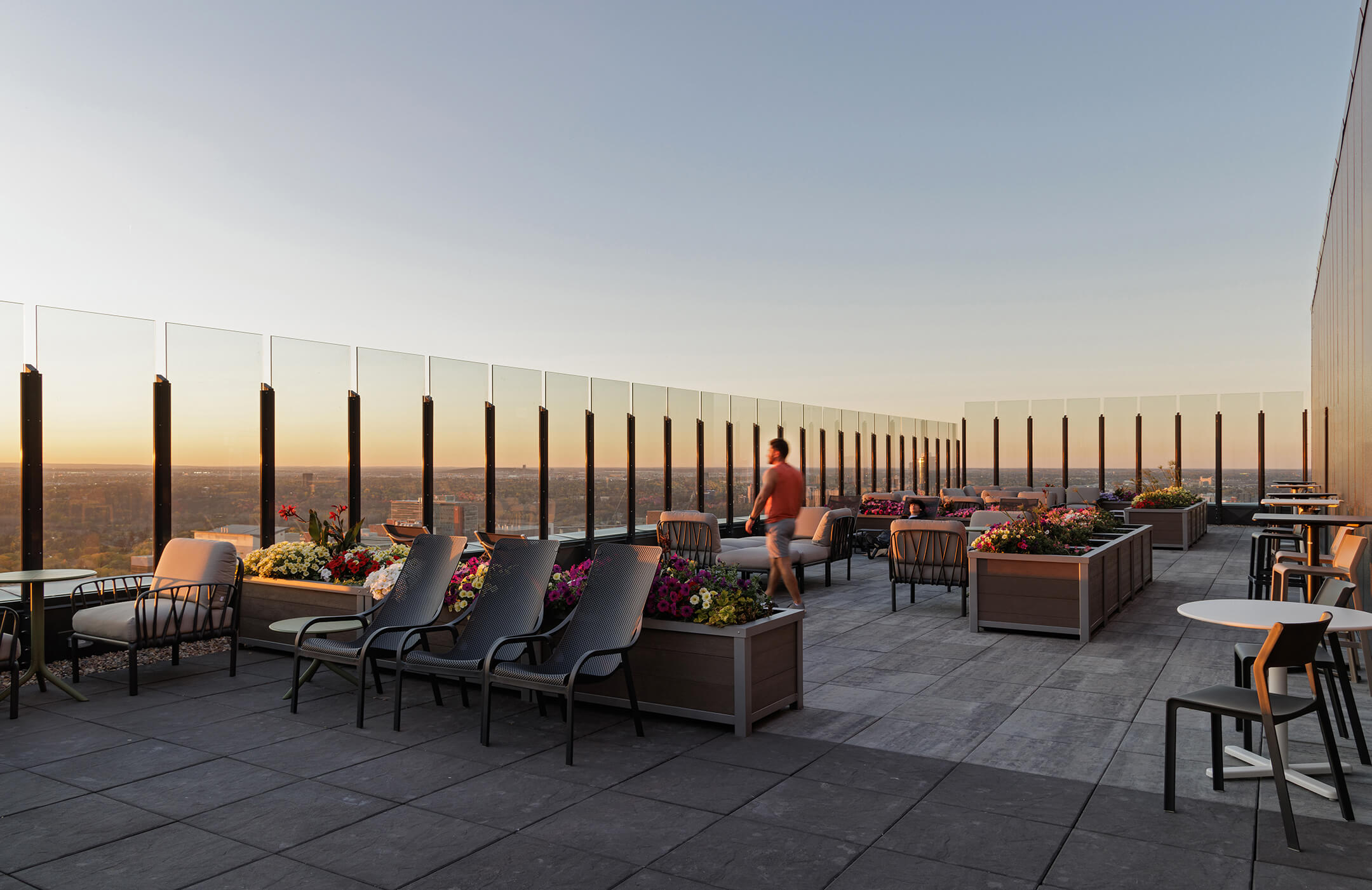 Architecturally, the project responds to its surroundings and fosters connectivity. Size, scale, materiality, and massing were carefully selected to integrate seamlessly with the existing urban fabric. The Laurent tower features a mix of window wall and terracotta cladding, offering a timeless aesthetic. Eleanor’s full window-wall exterior and large balconies give the building a unique profile and maximize access to natural light and views. At grade level, townhome connections along 86 Avenue NW aim to encourage future development to continue a pedestrian-friendly scale.